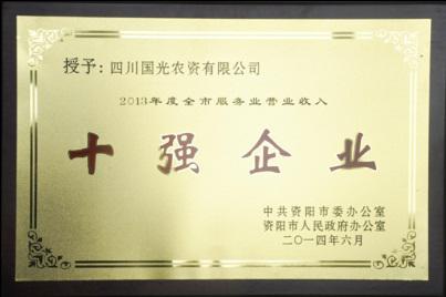 我公司的全資子公司“四川國光農(nóng)資有限公司”被評為2013年度資陽市“服務(wù)業(yè)營業(yè)收入十強企業(yè)”,在會上受到表彰。