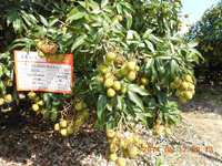 跟蹤后期試驗效果:荔枝果實坐果多、果實均勻、色澤良好。