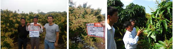海南三亞福田公司種植戶李伯真18889889828,在2010年6月4日,使用15%國光多效唑可濕性粉劑對金煌芒、澳芒、貴妃芒(樹冠直徑3.5米,樹直徑14cm,土埋60g15%國光多效唑可濕性粉劑;樹冠直徑4.5米,樹直徑14cm,土埋15%國光多效唑可濕性粉劑80g)進(jìn)行土埋處理。后期表現(xiàn)效果:控梢穩(wěn)定,不“沖梢”;葉片濃綠加厚;枝梢生長短壯。圖為福田公司果園。