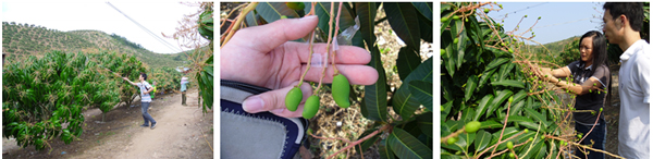 海南福田公司李伯真18889889828,在2009年12月31日觀察,貴妃芒、紅玉芒使用國光大果套餐后座果率明顯提高,同時果實商品性好,果實上色均勻。