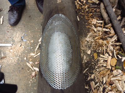 1、在樹干上用銼刀挖出一個(gè)樹洞,將樹洞邊緣及底部修整平(圖1);