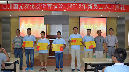 2015年7月16日,國光股份舉行了2015年新員工入職典禮,138名新員工光榮地加入國光大家庭。公司總經理及部分高管致辭,對新員工表示熱烈歡迎,并寄予了殷切期望,要求新員工要以“和、誠、真、新”的做人態(tài)度、“定、思、行”的做事方式,用感恩和愛的心態(tài)努力學習和工作。新員工代表謝超熱情洋溢地談感受、表決心,贏得了全場的掌聲!在典禮上還為特別優(yōu)秀實習生候陽;優(yōu)秀實習生:晏國強、王恒、謝超、芧萬宇頒發(fā)了獎狀和獎金。
