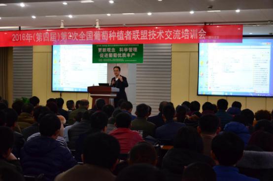 2016年12月19日-28日,第四屆(第1次,第2次)全國葡萄種植者聯(lián)盟技術(shù)交流培訓(xùn)會在國光召開,來自全國的葡萄種植戶、葡萄協(xié)會代表、經(jīng)銷商、零售商350余人參會。中國農(nóng)學(xué)會葡萄分會會長、北京農(nóng)學(xué)院教授、全國知名葡萄專家晁無疾;國家葡萄產(chǎn)業(yè)技術(shù)體系崗位科學(xué)家、中國農(nóng)學(xué)會葡萄分會副會長、上海交大教授王世平出席會議。