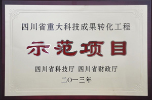 我公司采用自主知識(shí)產(chǎn)權(quán)研發(fā)的科技新產(chǎn)品榮獲2013年度“四川省重大科技成果轉(zhuǎn)化工程示范項(xiàng)目”稱(chēng)號(hào)。