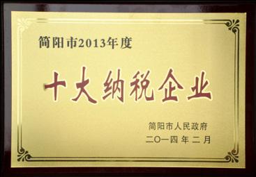 公司獲評(píng)簡(jiǎn)陽市2013年度十大納稅企業(yè)