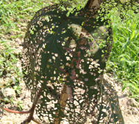 屬于同翅目,體外有蠟質(zhì)介殼。卵通常埋在蠟絲塊中、雌體下或雌蟲分泌的介殼下。 介殼蟲繁殖能力強(qiáng),一年發(fā)生多代。卵孵化為若蟲,經(jīng)過短時間爬行,營固定生活,即形成介殼。介殼蟲抗藥能力強(qiáng),一般藥劑難以進(jìn)入體內(nèi),防治比較困難。